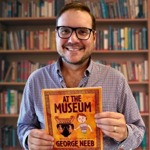 At the Museum is a children’s picture book written and illustrated by George Neeb. This story is about a young boy named Ryan who would rather play video games than go on a trip to the museum with his dad. Feeling bored and grumbling when they went to the museum, he was not interested in traveling back to ancient Greece and learning about Pegasus, Medusa, the Trojan horse, Zeus, Heracles, and the antique vases decorated with drawings. That is until he comes across an ancient vase with illustrations of Greek warriors engaged in epic battles. Noticing that something is moving on the vase, he leans closer to look. What happens next is an adventure into ancient Greece that will completely change his opinion about museums and ancient Greek history.