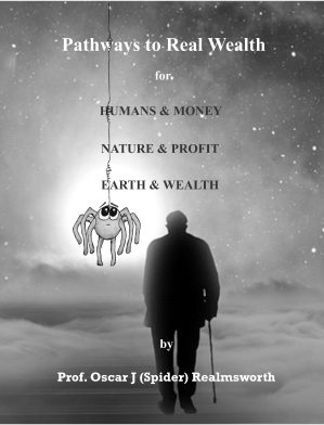 Spidergate: Worldwide Fiscal Climate Change - Rising Oceans of Debt or Ways to Wealth by Professor Oscar J Realmsworth is a non-fiction book that comfortably wraps up the subjects of ecology, finance, and politics in a single comprehensive guide. It is, in essence, written to the people of earth (human friends), as a love letter to the planet, a mild berating of what we've done to it, how we got to this point, and the changes that must occur for it to be rectified (as best it can). At the heart of this is wealth, which is absolutely not to be confused with money. The book is written from the quasi-point of view of Spider Spider who over eight chapters shows us the error of our ways...the monetization and capitalization of every conceivable resource on earth to the detriment of society and our planet, as a whole.