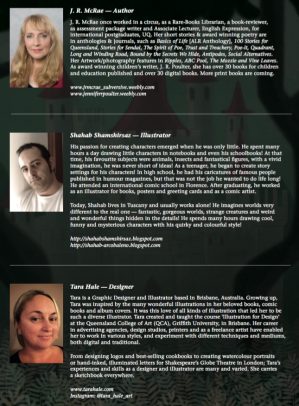 Australian author, poet and storyteller, J.R. Poulter, writing under the pseudonym of J.R. McRae, has created a fairy tale for older children. Tatter Wings is a story that combines fantasy with a Gothic graphic novel/picture book presentation. The illustrations, by master illustrator Shahab Shashirsaz, are dark, luring, ominous, as one would expect given the theme of evil that permeates the story. The atmosphere is set in the illustrations as the evil plot thickens. The story is told in narrative form with very little dialogue. Whilst the author masterfully builds the growing fear of the evil forces surrounding the mythical kingdom, the illustrations complement the mood. And, as good appears to overcome evil, and the wronged princess takes vows to live a pure life, there is still a sense of evil lurking in the forest. A sinister story with a message: never trust what someone looks like, for true beauty is found within.
